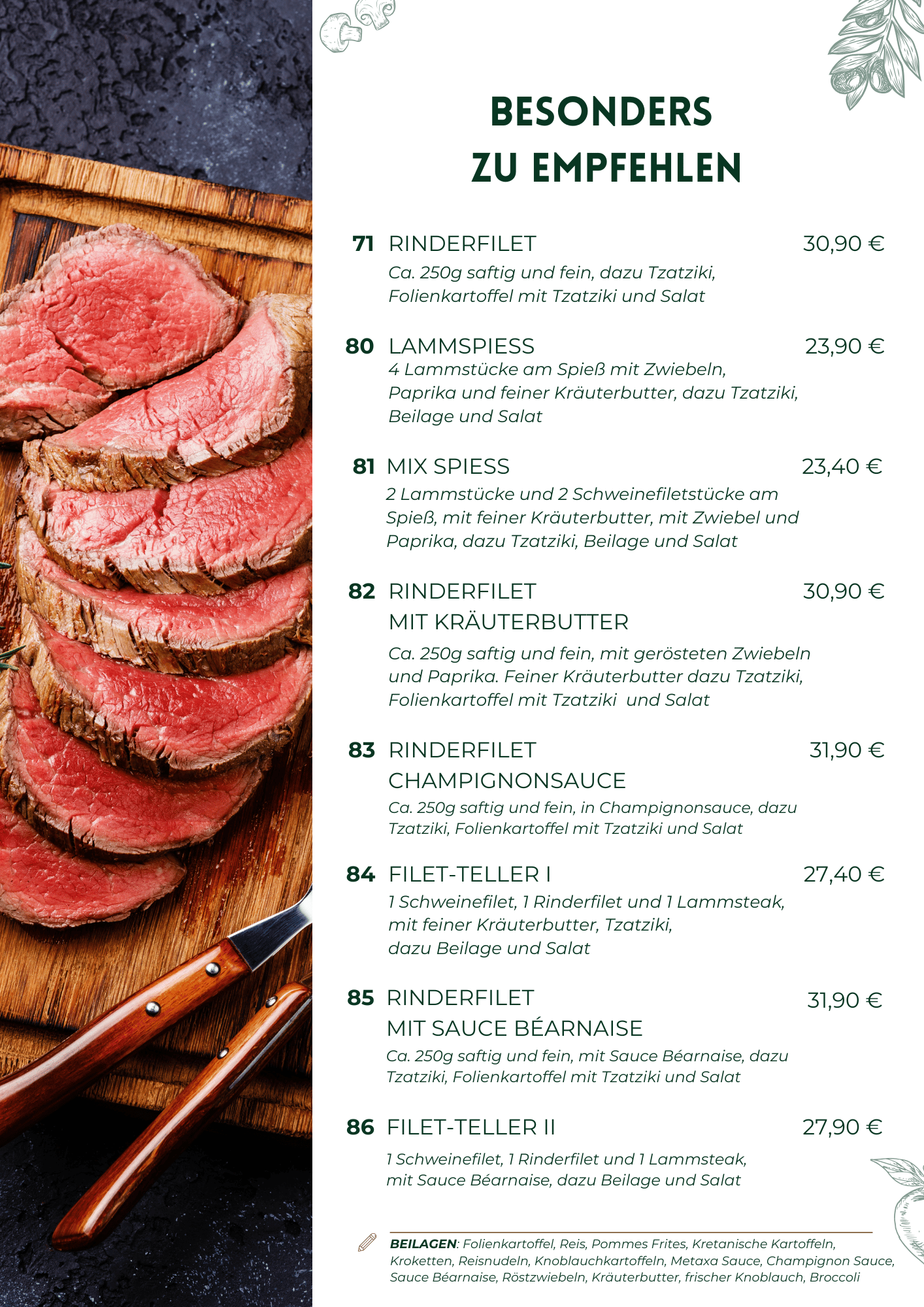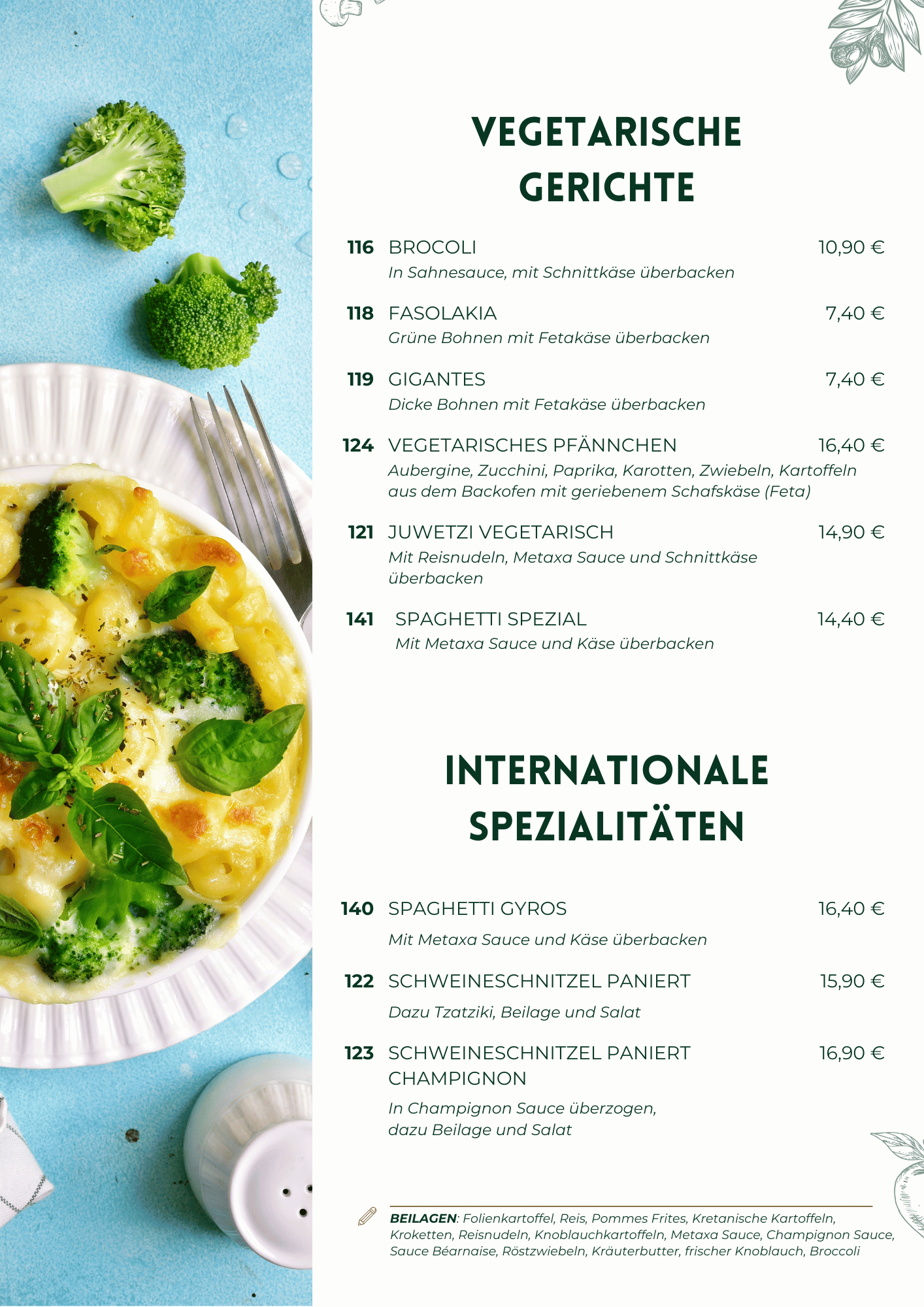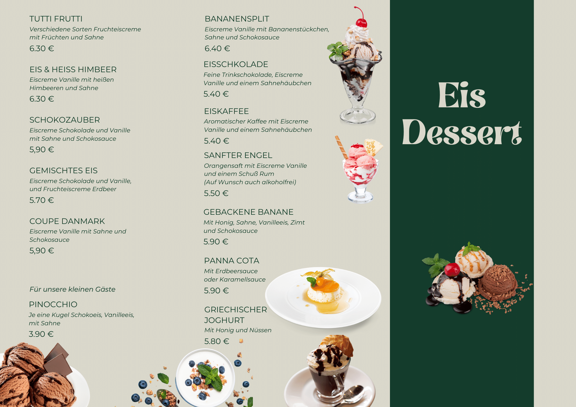 Herzlich willkommen in einer kulinarischen Welt voller Genüsse. Entdecken Sie unsere vielfältige Speisekarte, die mit Liebe zum Detail und hochwertigen Zutaten für Sie zusammengestellt wurde.