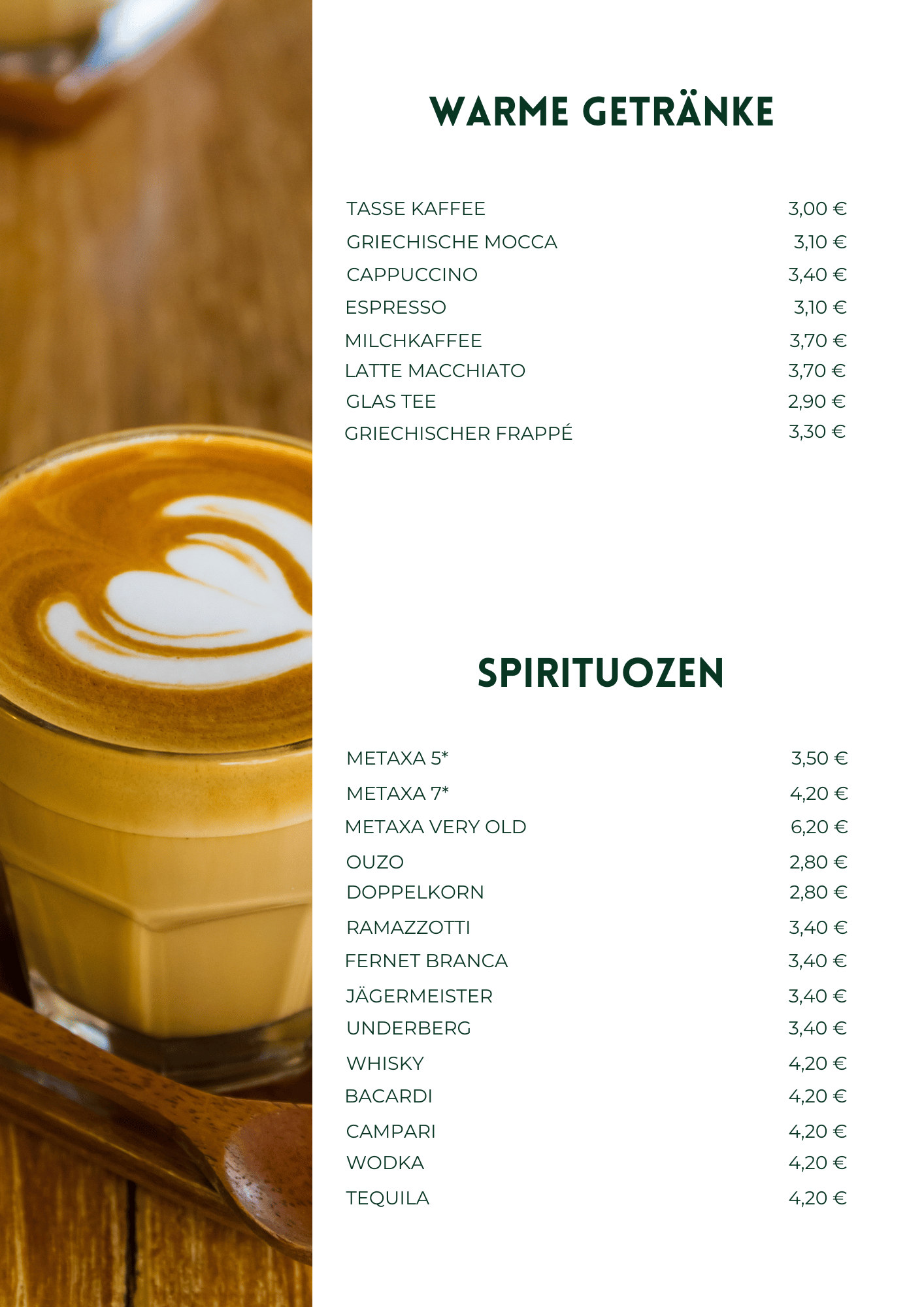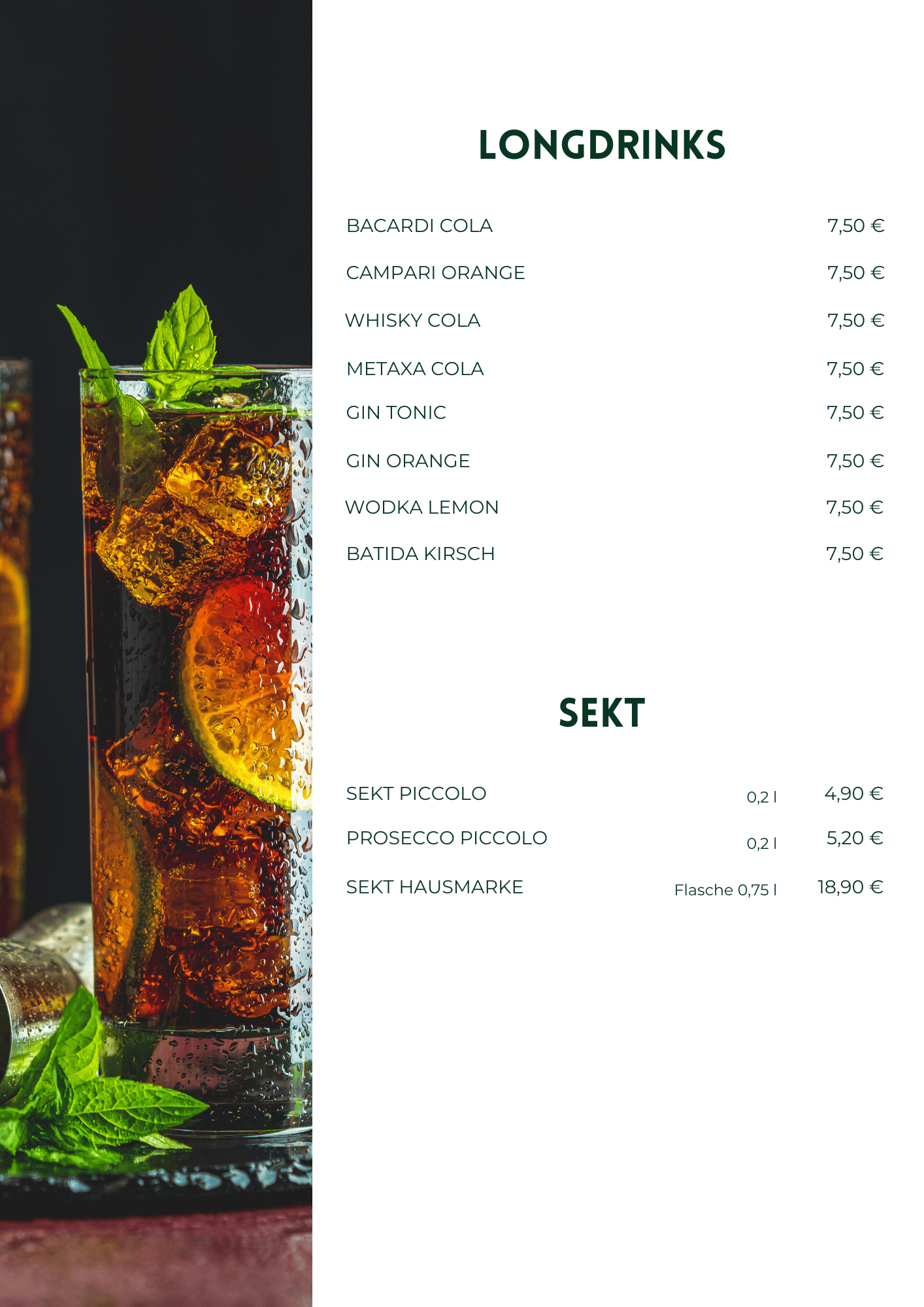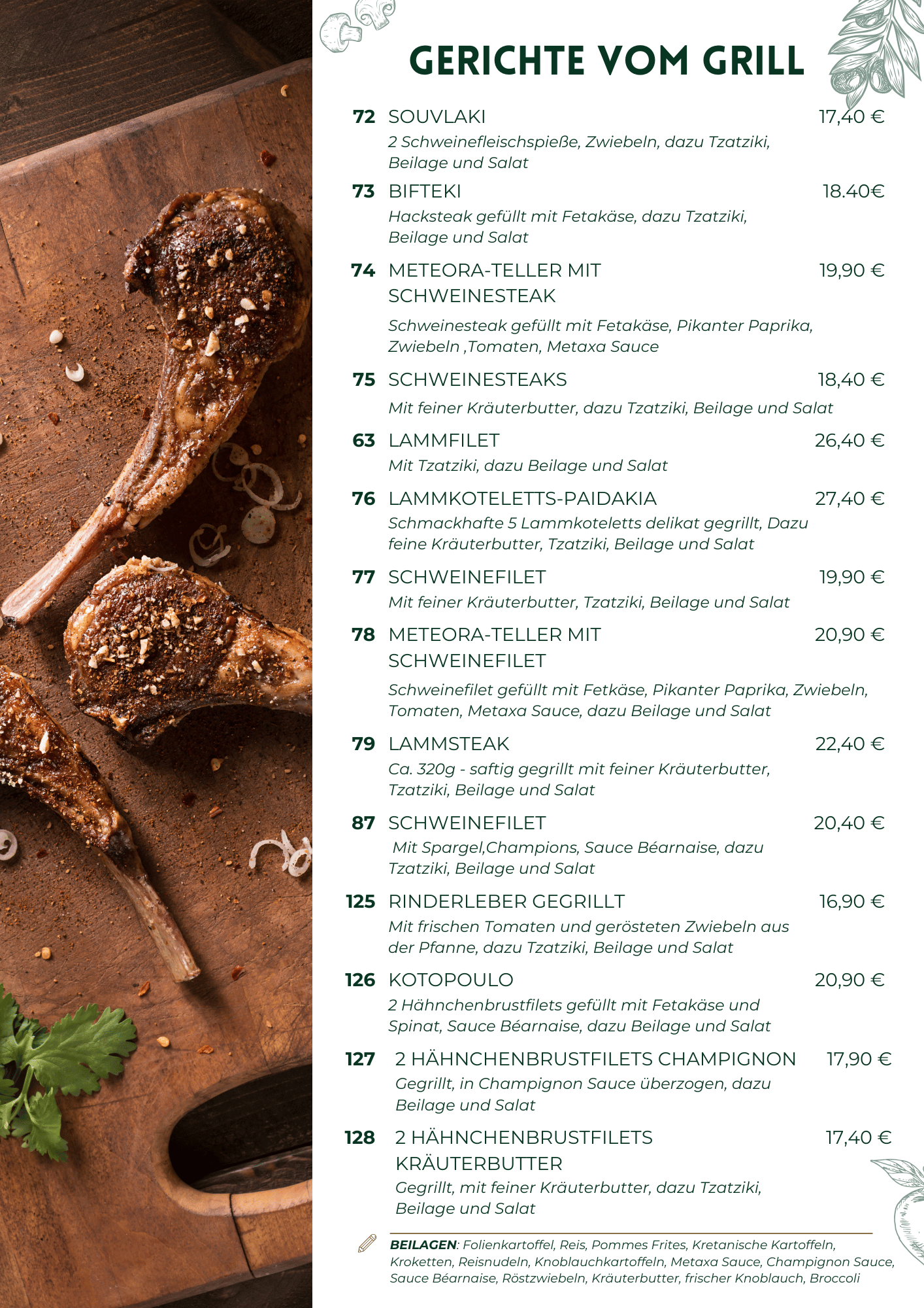 Herzlich willkommen in einer kulinarischen Welt voller Genüsse. Entdecken Sie unsere vielfältige Speisekarte, die mit Liebe zum Detail und hochwertigen Zutaten für Sie zusammengestellt wurde.
